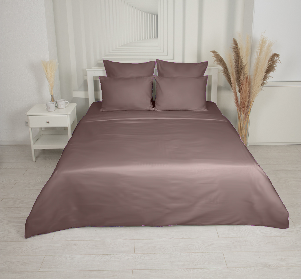 Роскошный комплект постельного белья из сатина цвета капучино
